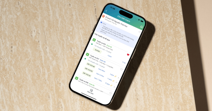 Bước 3: Hệ thống sẽ lập tức hiển thị các tuyến xe đề xuất; hãy bấm vào một lộ trình cụ thể để xem chi tiết số xe, thời gian đi bộ đến trạm và tổng thời lượng hành trình.