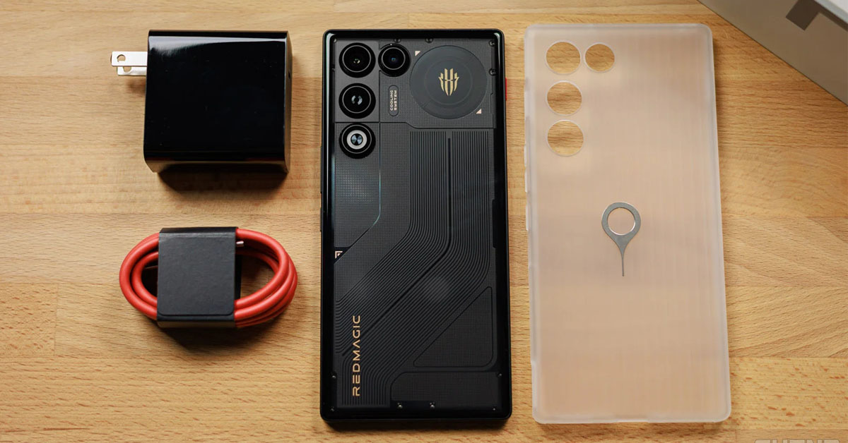 Điểm nhấn thiết kế bao gồm mặt kính cong 2.5D tạo cảm giác cầm nắm thoải mái, nút Magic màu đỏ đặc trưng và hai nút cảm ứng ở cạnh bên dành cho game thủ. Hệ thống tản nhiệt chủ động vẫn có mặt với quạt hút không khí từ khe hình tròn ở mặt sau. Hộp máy đi kèm củ sạc nhanh 80W, cáp USB-C và ốp lưng bảo vệ - khá đầy đủ so với xu hướng bỏ phụ kiện của các hãng khác.